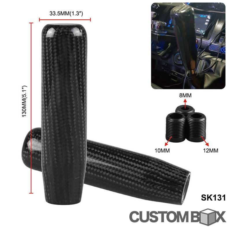 130mm リアルカーボン 汎用 棒形状 シフトノブ 艶有 MT車 AT車
