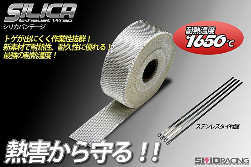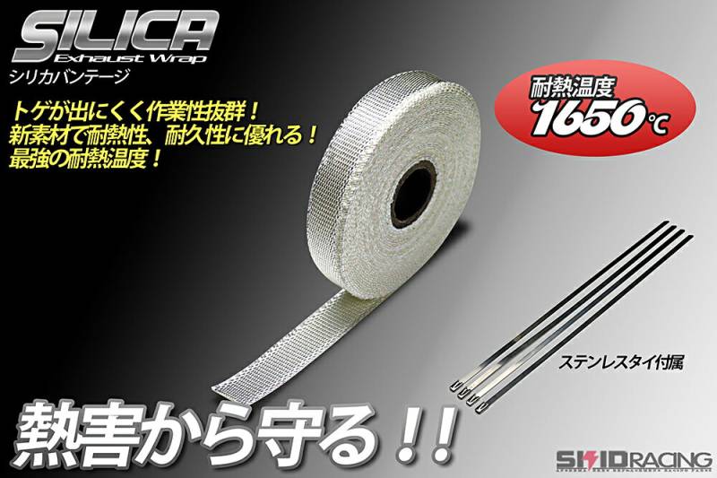 最強 シリカ サーモ バンテージ 25mm 1m ~ 耐熱温度1650℃ サーモ 耐熱 断熱 遮熱 エキマニ アウトレットパイプ マフラー 等に!
