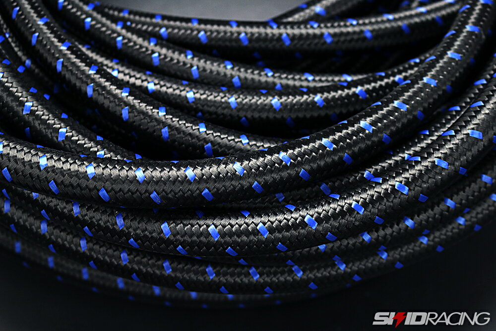 【SKID RACING】 AN10 ブルーステッチ ナイロン メッシュホース 1m~切り売り 超高品質 柔軟 耐圧 オイル 燃料配管等に しなやかに曲がる エンジンオイル